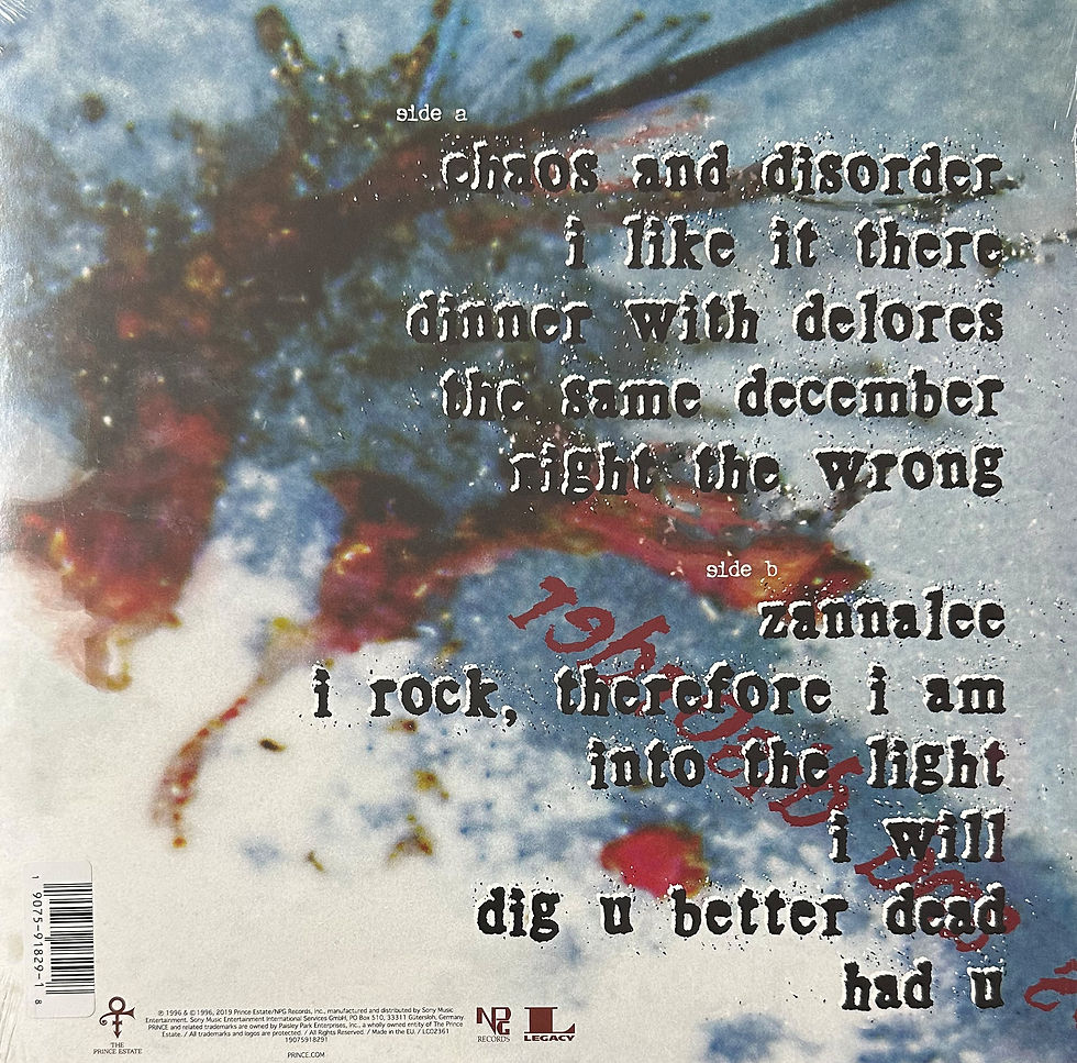 Chaos And Disorder Vinyl Album EU: 2019 Prince 0(+>