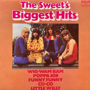 Released as a vinyl LP in the UK in December 1972, on RCA Victor (catalogue: SF 8316), The Sweet’s The Sweet's Biggest Hits was their first greatest hits compilation — gathering their 1971–1972 glam-pop smashes. Produced by Phil Wainman for New Dawn Productions, this 12-track set featured “Wig-Wam Bam,” “Little Willy,” “Co-Co,” and “Poppa Joe.” Issued in laminated sleeve, cassette, and 8-track variants. Reached No. 3 in Finland.