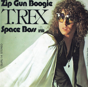 T. Rex’s “Zip Gun Boogie” 7-inch vinyl single, was released in the UK on November 1, 1974, on EMI Records (catalogue: MARC 9). Backed with “Space Boss,” The release was actually released under the name of Marc Bolan in the UK and some European countries, this energetic glam rock track, written and produced by Marc Bolan, was the third single taken from the album Bolan's Zip Gun.