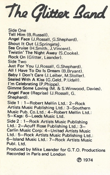 ℗ & ©: 1974 Bell Records. Recorded at unspecified studios, 1974. Pressed by EMI Records. Printed by Robert Stace. Produced for GTO Productions. Matrix numbers confirm authenticity.