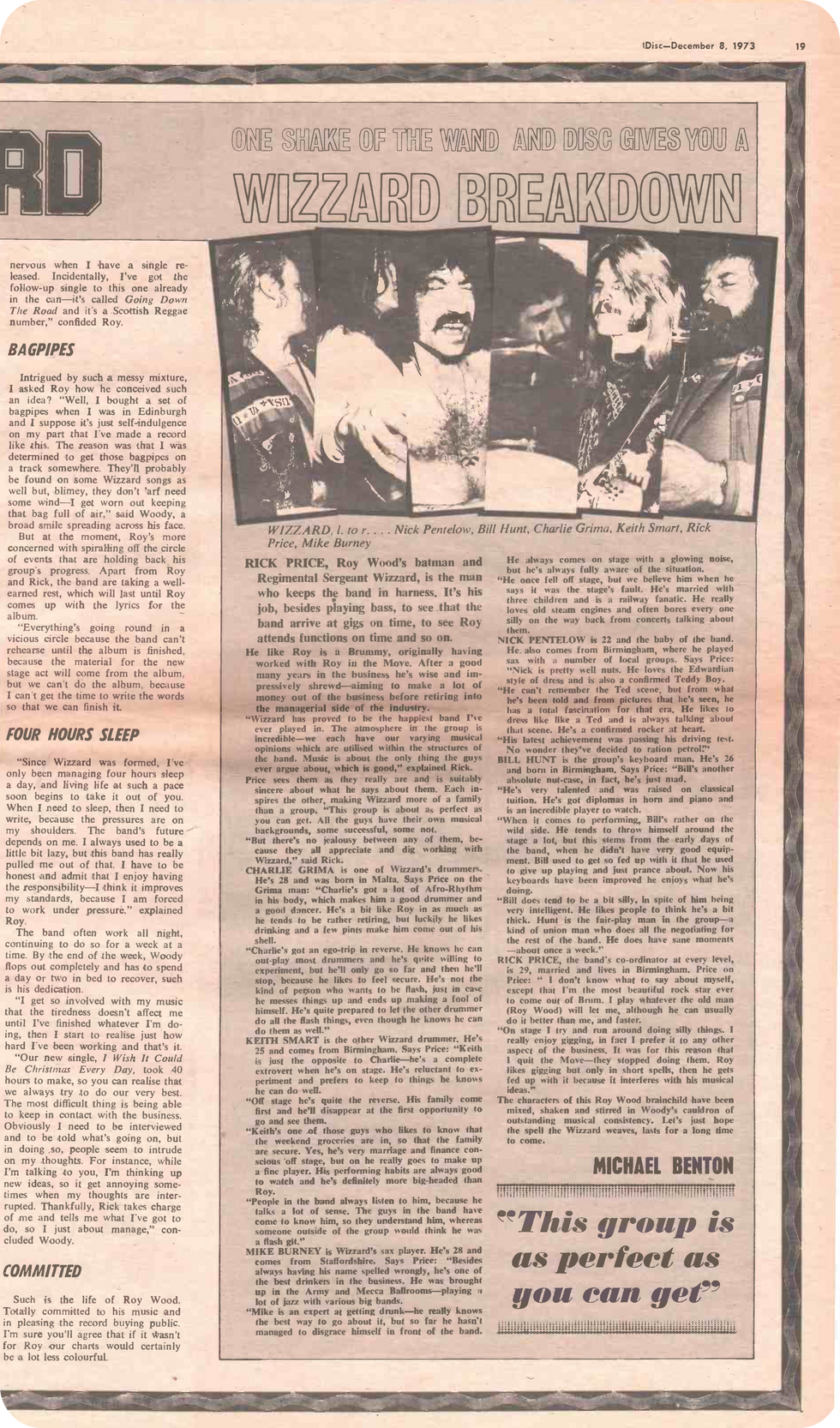 Wood 'N' Wizzard, a two-page article in Disc, December 8, 1973.